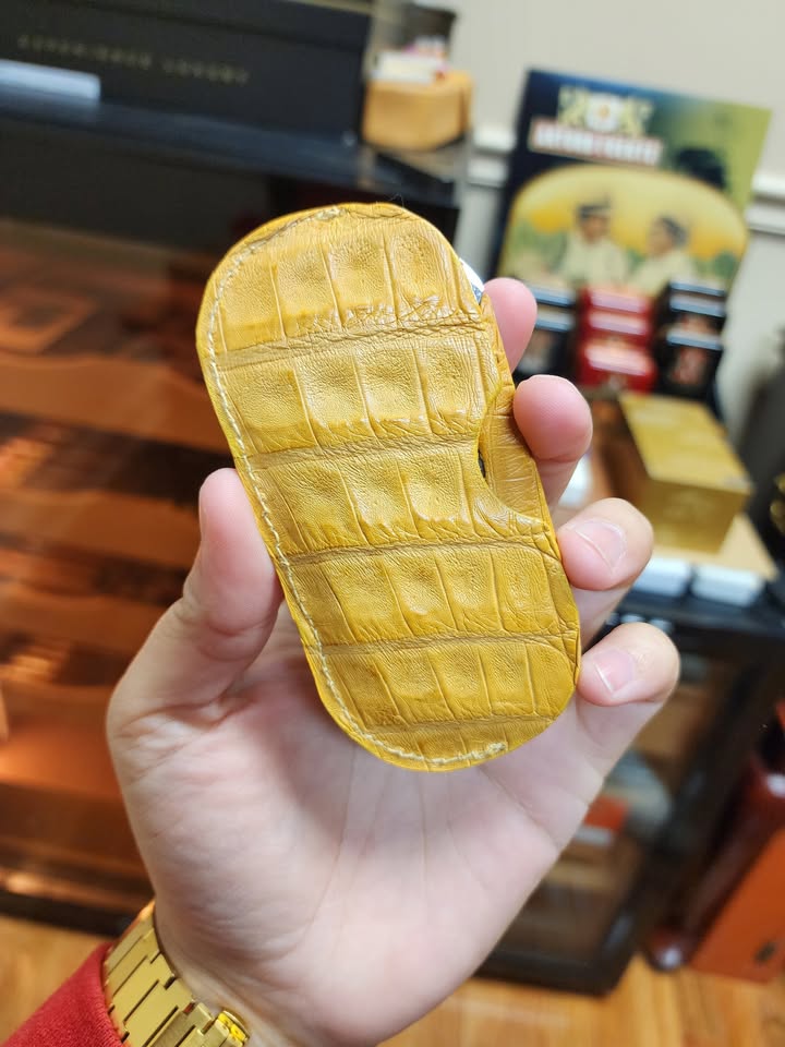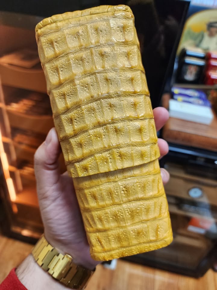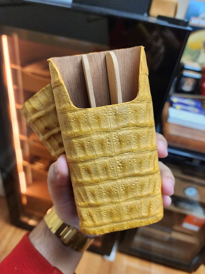 Brizard & Co. Limited Edition Caiman Leather Cigar Set – Antique Yellow
