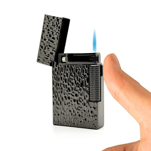 Introducing the brand-new Hubbard Hammered Lighter – a perfect blend of elegance and functionality. Featuring a unique croco cut pattern-textured design, this lighter offers both soft and torch flames, providing versatility for any lighting need. Its durable flint mechanism ensures reliable ignition, and the compact, ergonomic shape makes it easy to handle.