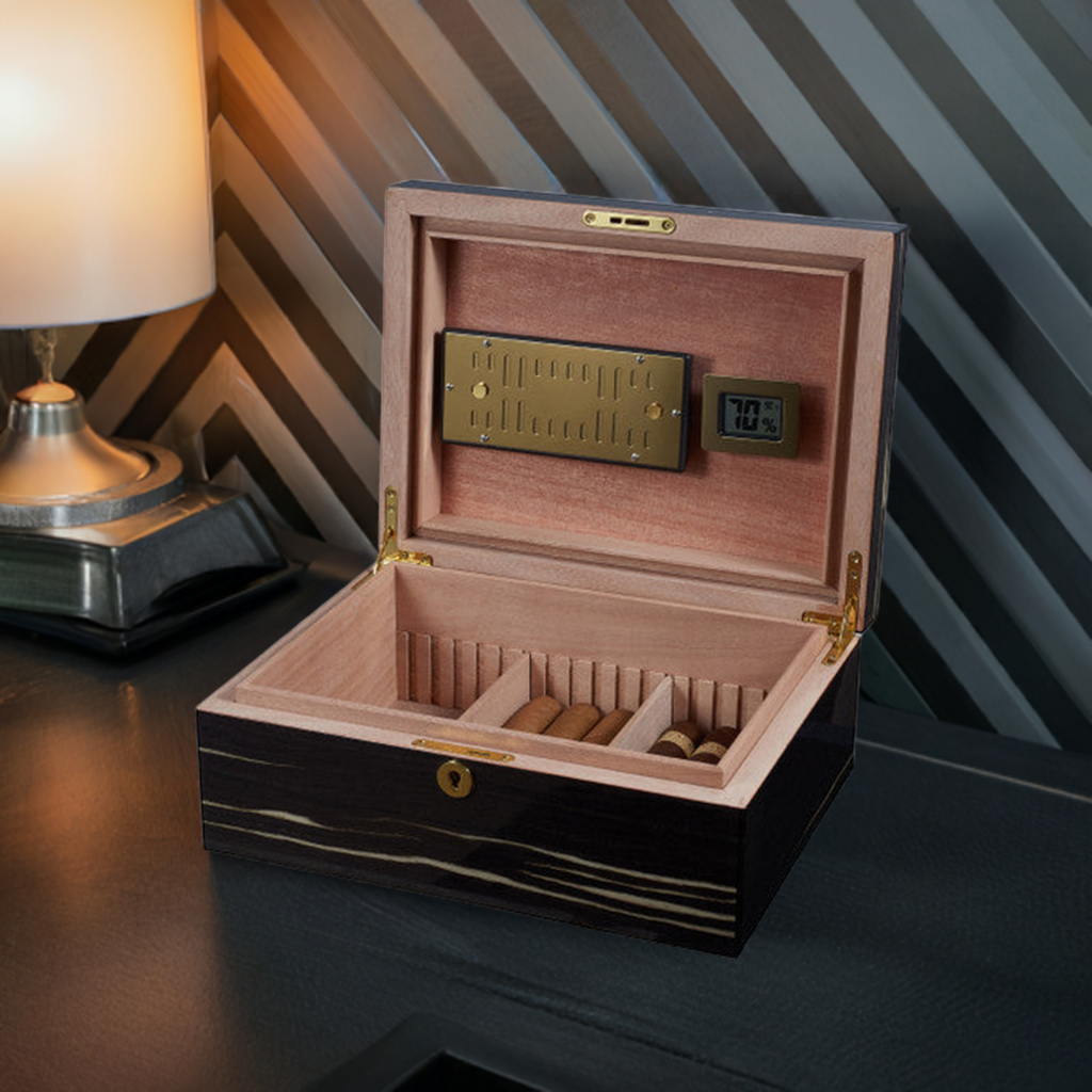 - Optimal Conditions: Cedar-lined interior, humidifier, and digital hygrometer